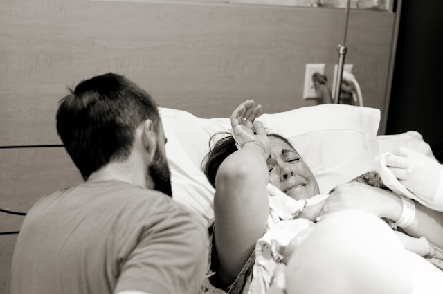 My mom and Amanda (my sister-in-law) came to the hospital around 1:00, maybe earlier. The timeline is a little blurry for me but I know they were lingering in the hall, and came in the room a few times to see how I was doing. The doctor (Dr. Drewes) came in around 1:30 to check me and break my water. I was dilated to 4cm at this point, and I remember thinking, oh this is going to take awhile. Even the doctor thought it could be several more hours. But that is where I was wrong. Once he broke my water, things really picked up quickly.